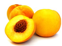 Su fruto es el melocotón, o durazno. También conocido como piesco, contiene una única semilla encerrada en una cáscara dura, el «hueso». Esta fruta, normalmente de piel aterciopelada, posee una carne amarilla o blanquecina de sabor dulce y aroma delicado. A la variedad que no tiene la piel aterciopelada se le llama nectarina o pelón.